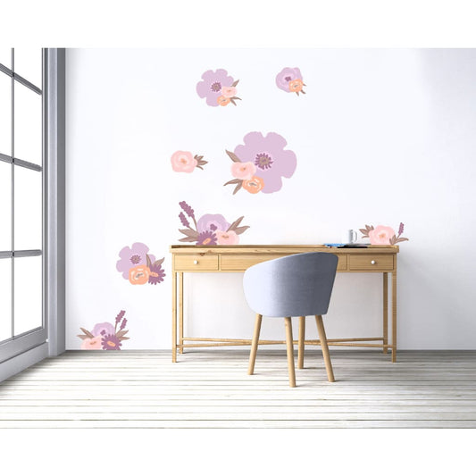 Watercolor Flowers Wall Decals | Purple Pink Orange