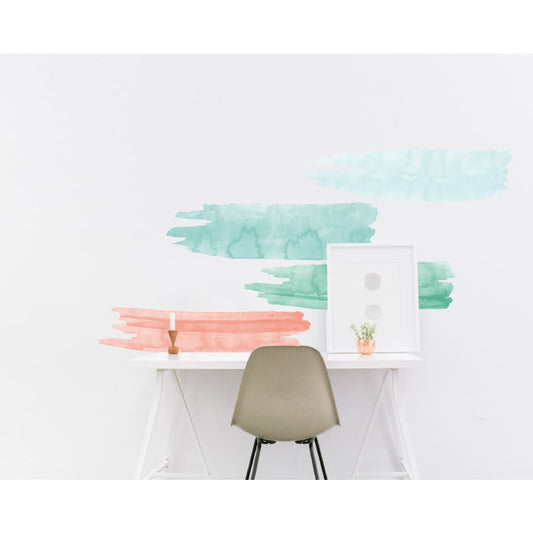 Watercolor Strokes Wall Decals | Coral Teal Green