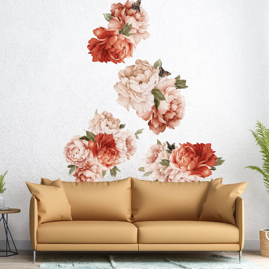 Peonies Wall Decals Vintage Floral Wallpaper Stickers | Coral