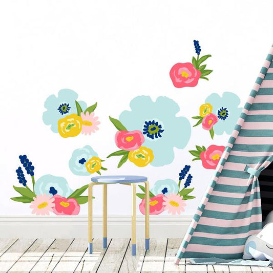 Watercolor Flowers Wall Decals | 3 Large Flower Clusters